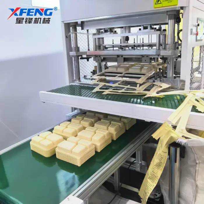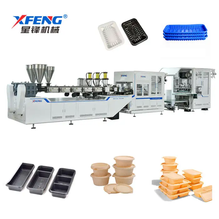 The machine can produce various food packaging items, including lunch boxes, food trays, and custom packaging solutions.