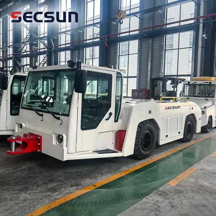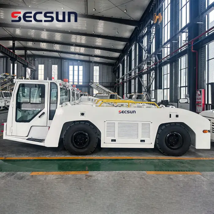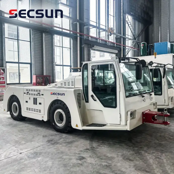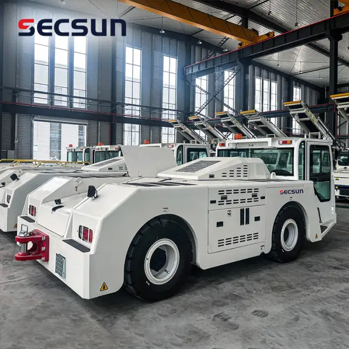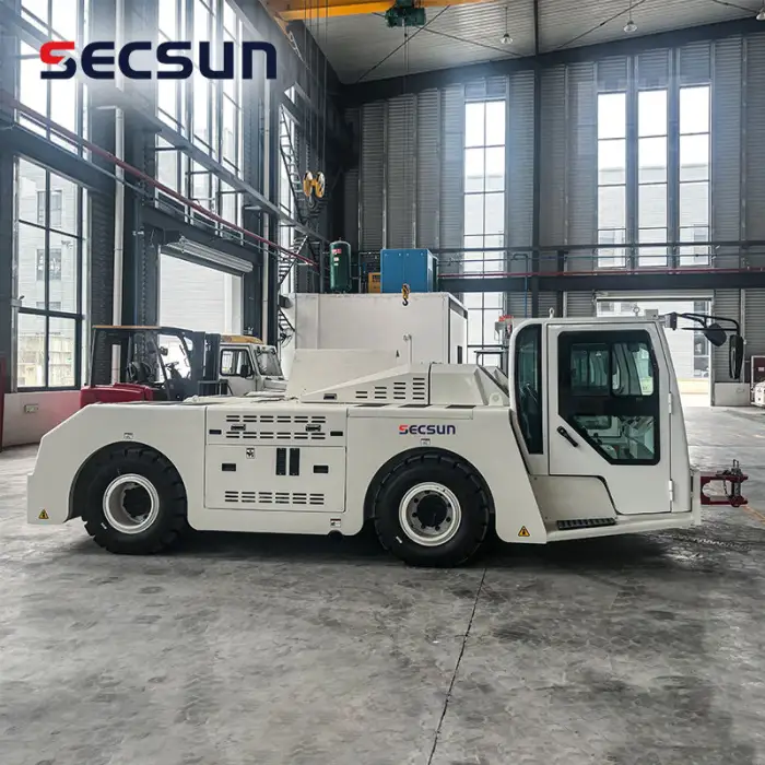 The Large Airport Equipment 12Ton 120KN Lead Acid Battery Electric Airport Baggage Towing Tractor can handle a maximum towing capacity of 120KN.