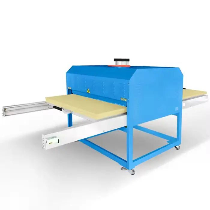 The working area of the Large Format Double Station Pneumatic Sublimation Heat Press Machine is 80x100 cm, which is suitable for larger designs.
