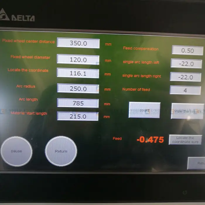 1. What types of materials can the bending machine handle?The Latest Technology Pipe and Tube Bending Machine is designed to bend PVC and aluminum profiles. 2. What is the maximum bending width of this machine?The maximum bending width is 150mm. 3. What is the minimum bending diameter for this machine?The minimum bending diameter is 230mm. 4. What is the hydraulic push pressure of this machine?The hydraulic push pressure is 20 T (200Mpa). 5. What are the dimensions of the machine?The overall size of the machine is 1500x1200x1450mm. 6. What is the roller diameter of the bending machine?The roller diameter is 60mm. 7. What is the maximum diameter of the roller mould?The maximum diameter of the roller mould is 200mm. 8. What is the roller rotating speed range?The roller rotating speed ranges from 1 to 8 r/min. 9. What is the top roller positioning precision?The top roller positioning precision is 0.02mm. 10. How far can the top roller travel?The top roller can travel up to 280mm. 11. What is the working pressure of the machine?The working pressure ranges from 0.2 to 0.3Mpa. 12. Is this machine automated?Yes, the machine is fully automatic. 13. What is the motor power of the bending machine?The motor power is 6 kW. 14. How heavy is the bending machine?The weight of the machine is not specified in the provided description. 15. Is this machine suitable for large projects?Yes, this machine is designed to handle both small and large projects efficiently. 00 Overall Rating