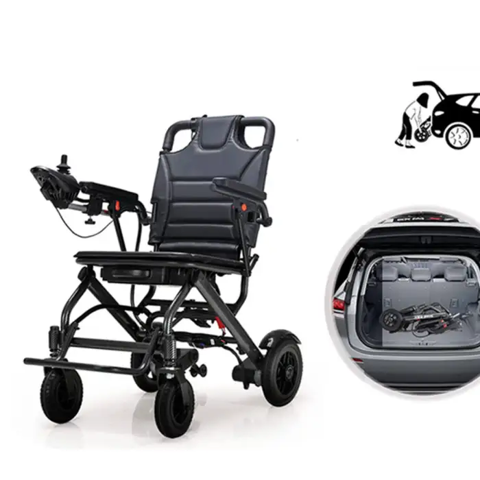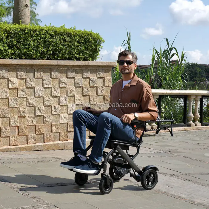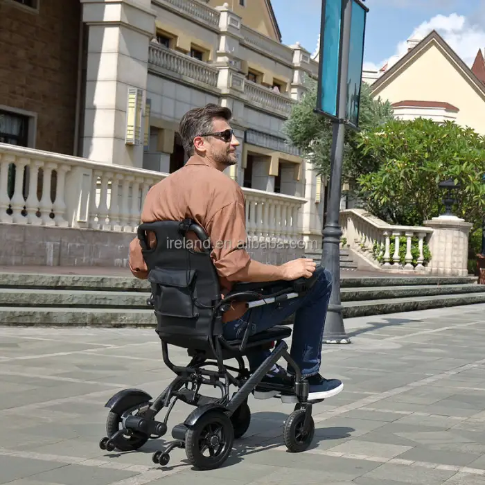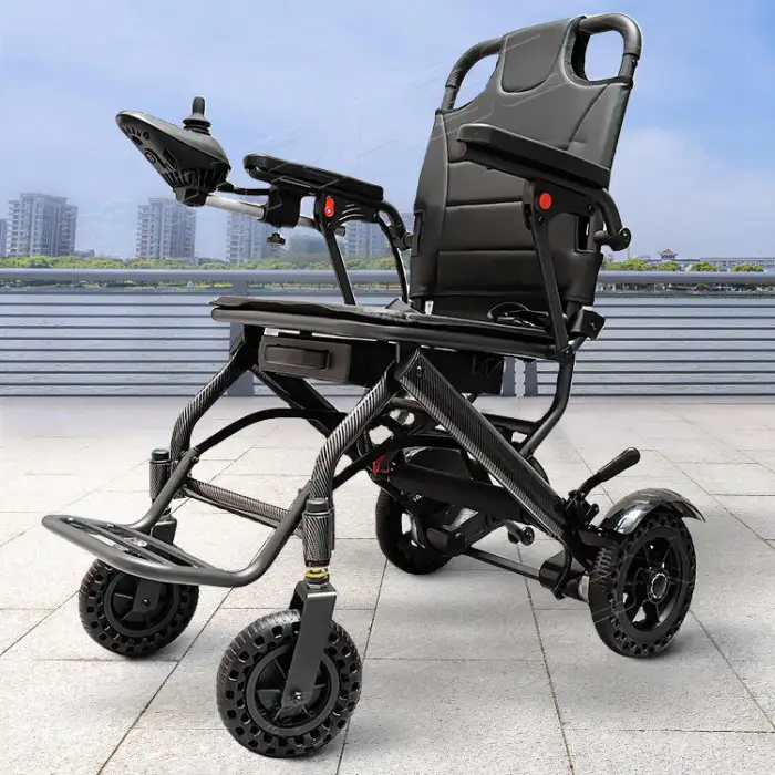 The Lightweight Electric Wheelchair has a driving range of up to 12 km on a full charge.