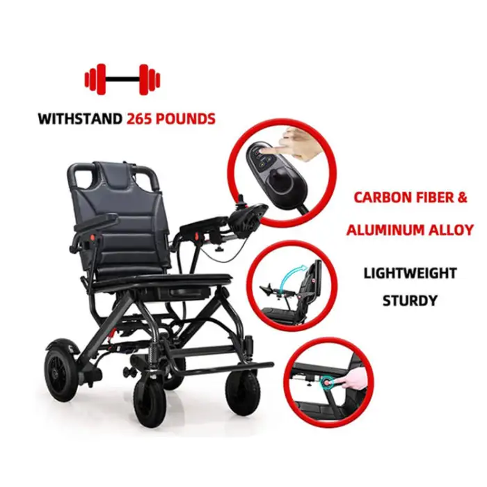 The wheelchair is equipped with a 24V/6AH lithium battery, which is long-lasting and efficient.