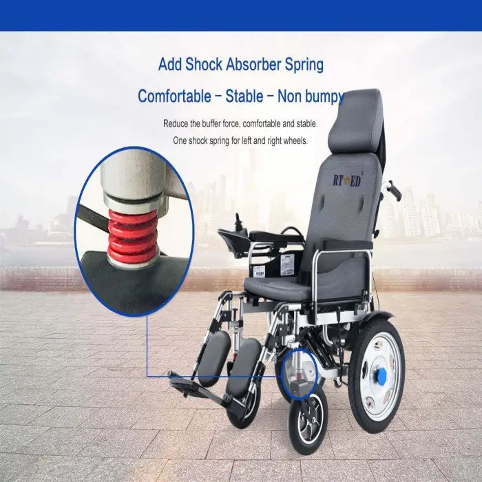The wheelchair can be charged using a standard electrical outlet with a voltage of 110V/220V. Simply plug in the charger that comes with the wheelchair to recharge the battery.