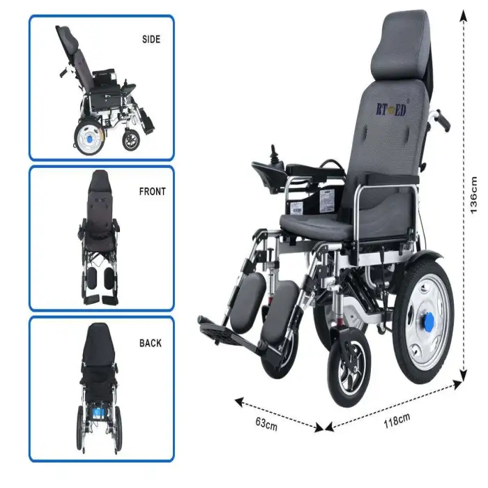 The dimensions of the Lightweight Foldable Electric Multifunctional Wheelchair are 1180 mm in length, 630 mm in width, and 1360 mm in height.