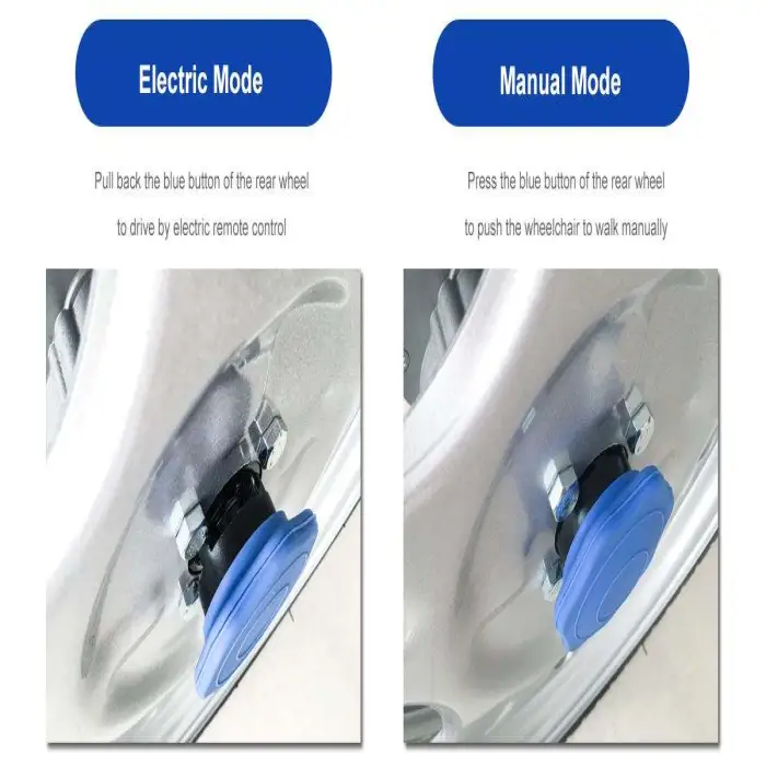 The wheelchair features a simple folding mechanism that allows you to easily collapse it for storage or transport. Just pull the release handle and the wheelchair will fold in seconds.