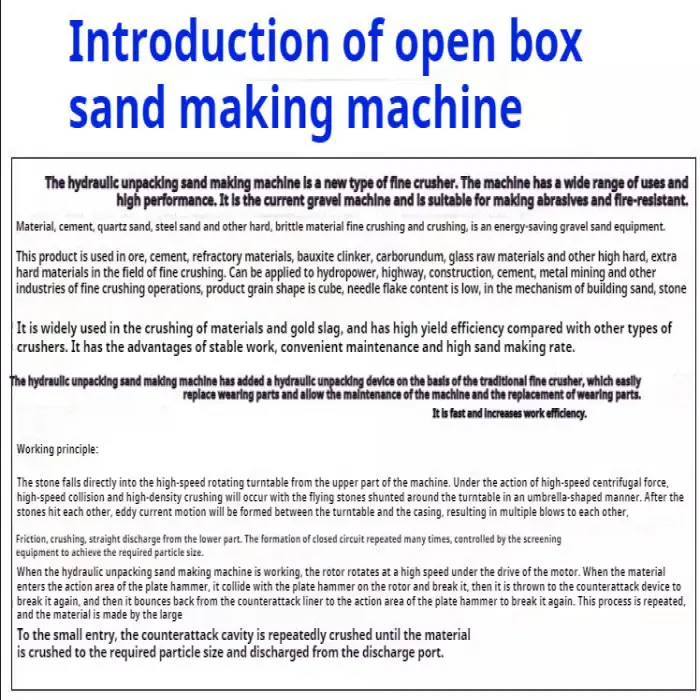 The Limestone Sand Making Machine can crush various materials including stones, rocks, ores, and coal.