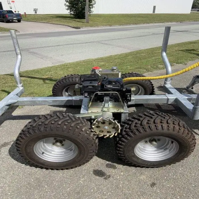 The Log Crane 350 is equipped with a gasoline engine, providing reliable power for various log handling tasks.