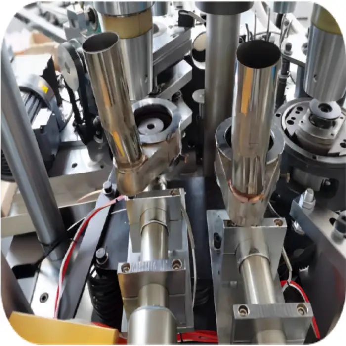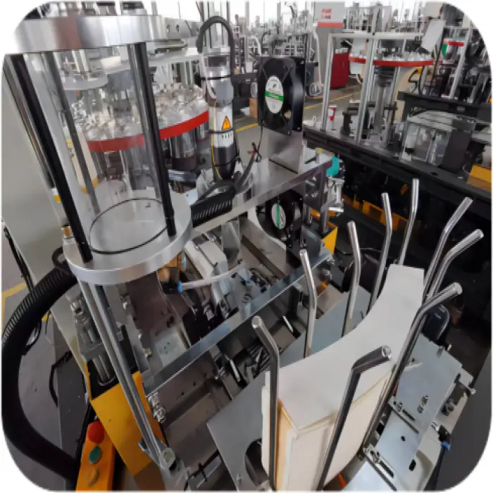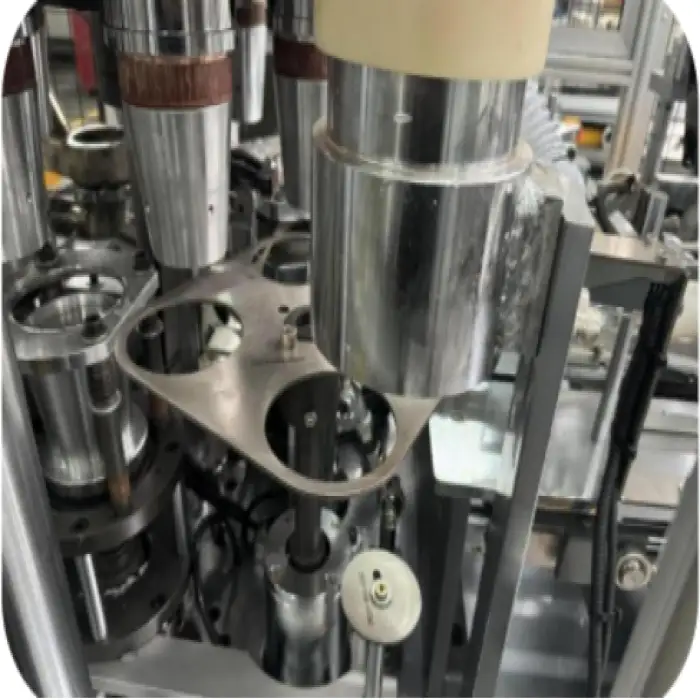 The cup side welding in this machine is performed using ultrasonic technology for strong and reliable seams.
