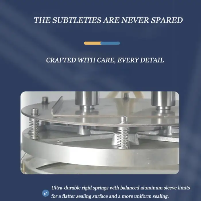 This machine can seal aluminum foil containers, cans, and bottles.