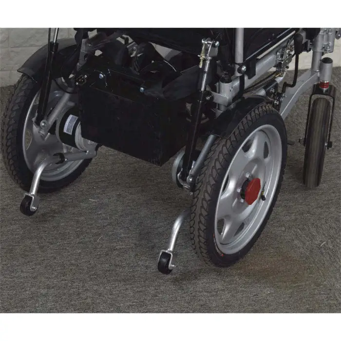 The Luxury Electric Folding Handicapped Wheelchair can support a weight capacity of up to 300 lbs, ensuring it is suitable for a variety of users.