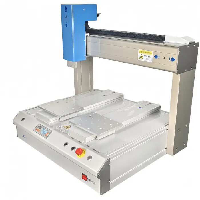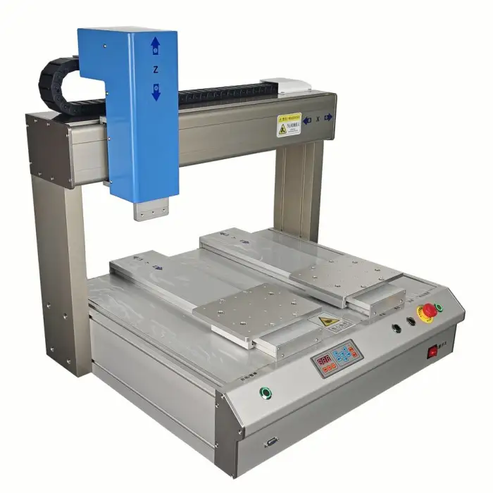 This dispensing machine is ideal for electronic component assembly, adhesive dispensing, sealant application, precise fluid dispensing in laboratories, and packaging and labeling tasks.