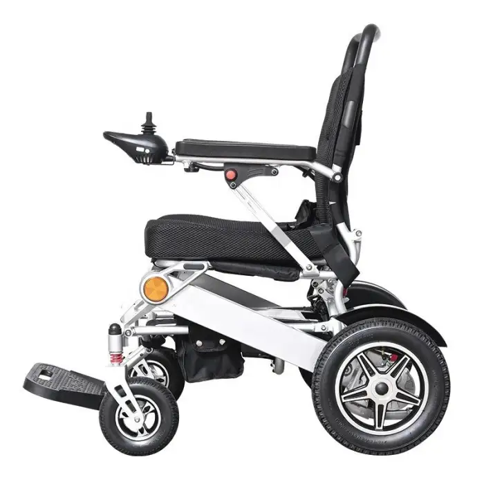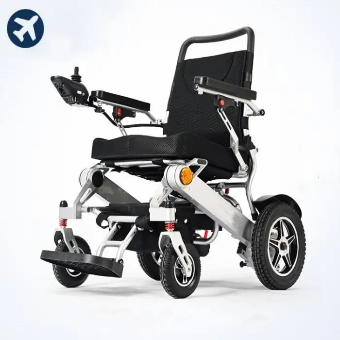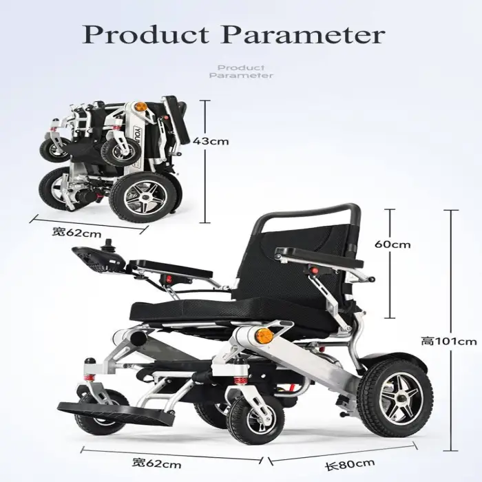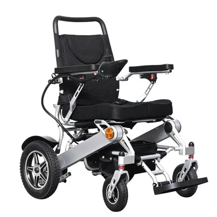 The Medical Lightweight Folding Electric Wheelchair can support a weight capacity of up to 265 lbs.