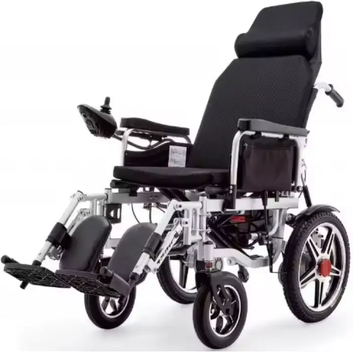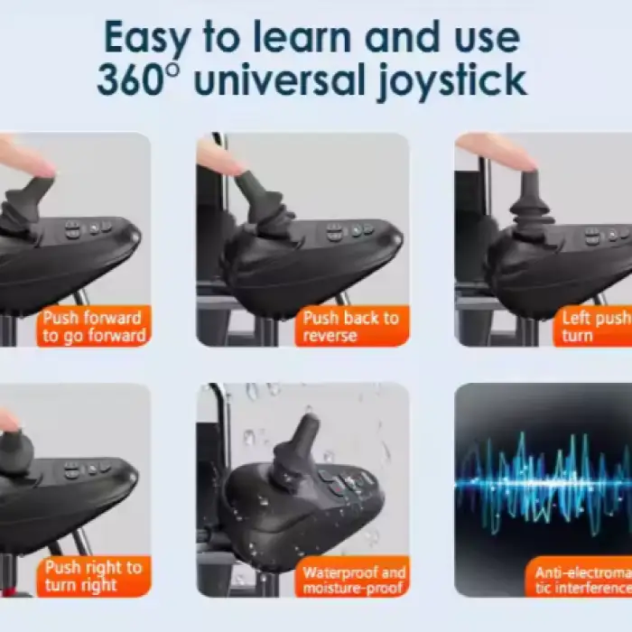 The wheelchair has a 360-degree flexible control system that allows for easy maneuvering.