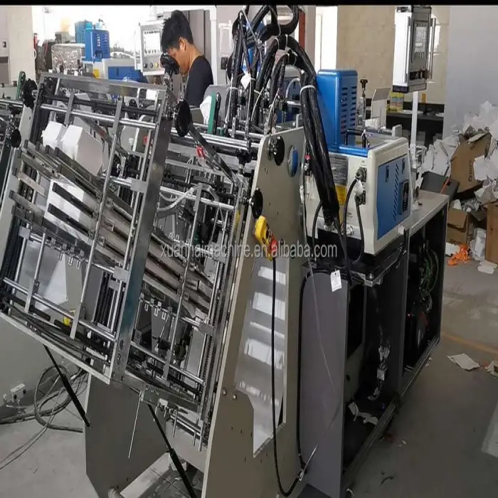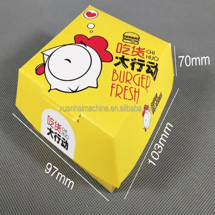 The Melt Glue Roller Hamburger Paper Box Machine requires 220V electrical power and consumes approximately 4kW/h.