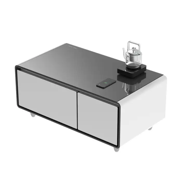 The coffee table employs compressor cooling for optimal temperature control.