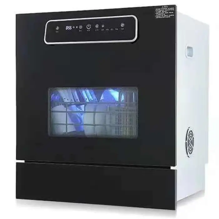 The Mini Household Portable Dishwasher is designed to be compact, making it suitable for small spaces, but specific dimensions can be found in the product specifications.