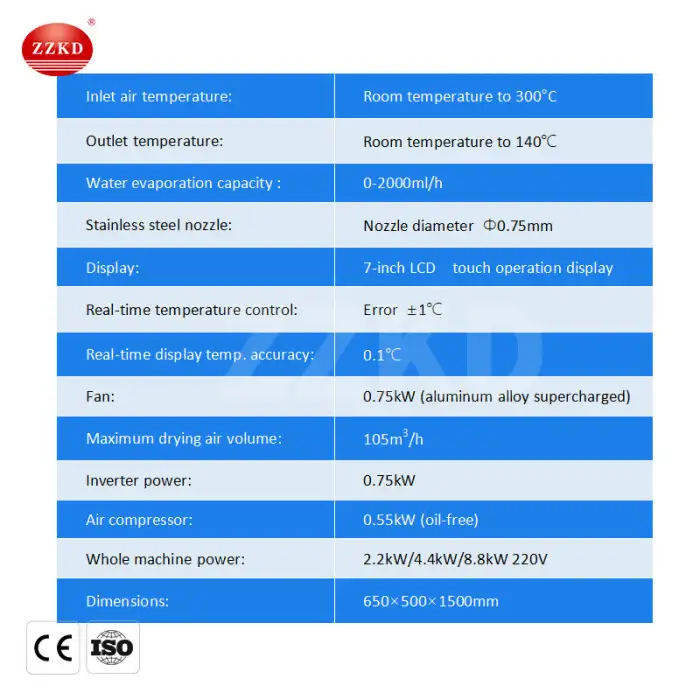 The air inlet temperature can be controlled between 30℃ and 300℃.