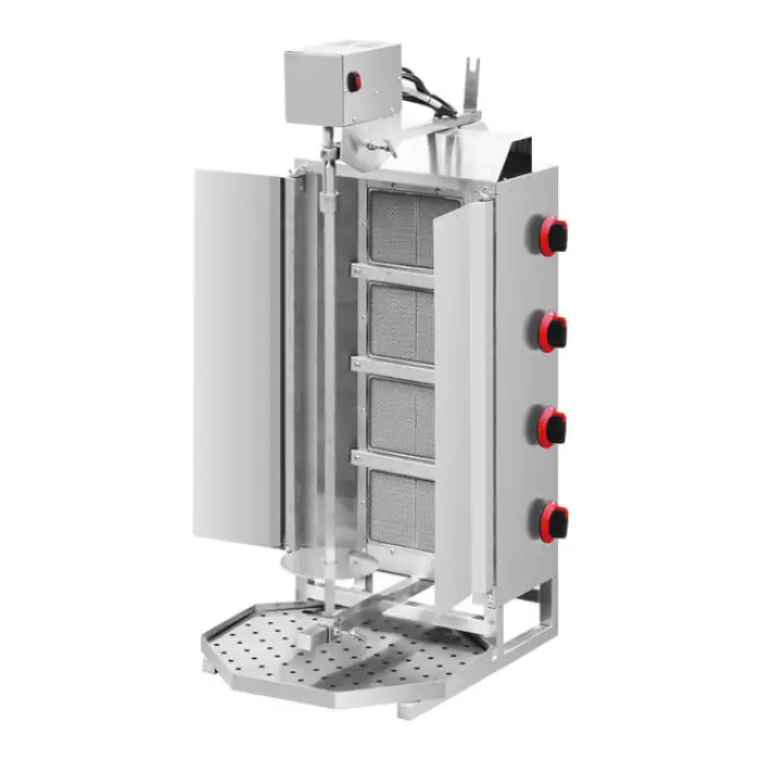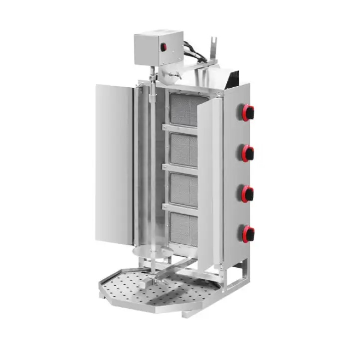The Mini Stainless Steel Kebab Machine can be powered by both electric and gas.