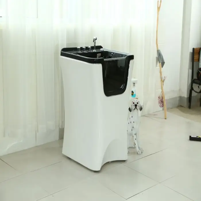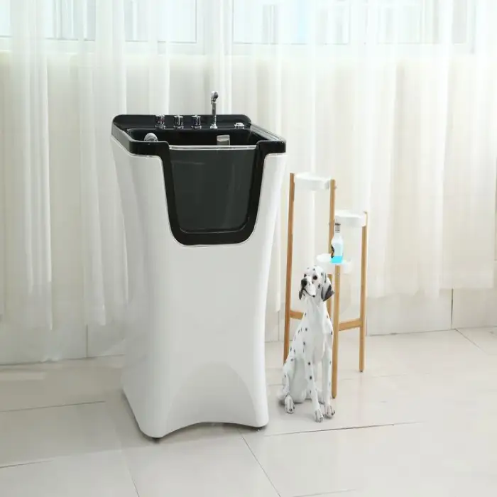 It includes features that allow for deep cleaning, easy maintenance, and comfortable space for pet grooming.