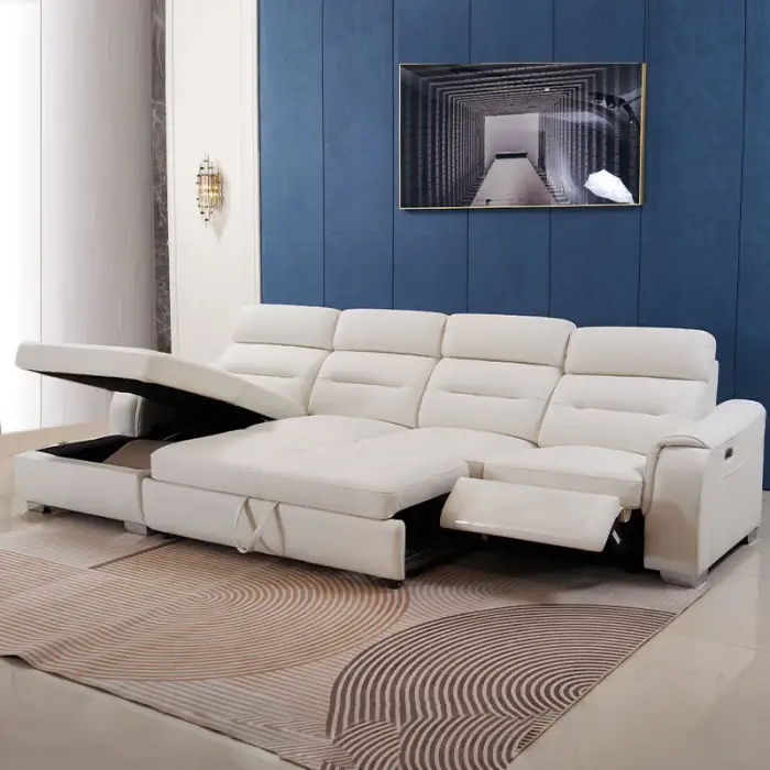 Key features include an adjustable and comfortable design, durable materials, easy conversion from sofa to bed, compact storage, USB storage, and a hidden backrest table.