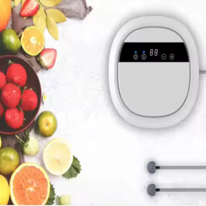 The ozone generator produces ozone, which effectively breaks down contaminants on food surfaces, eliminates bacteria, and neutralizes chemicals, providing a thorough cleaning process.