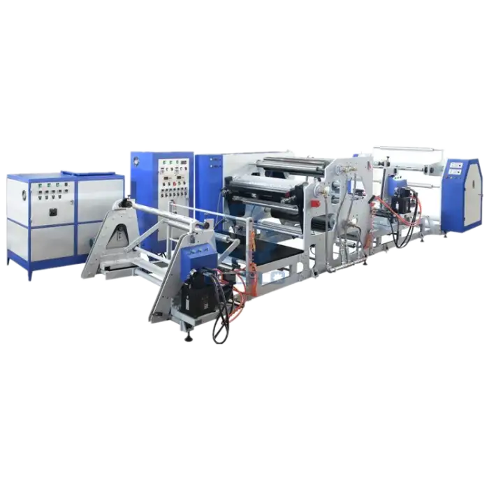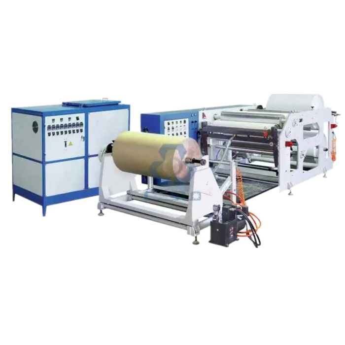 The machine uses hot melt glue for coating.