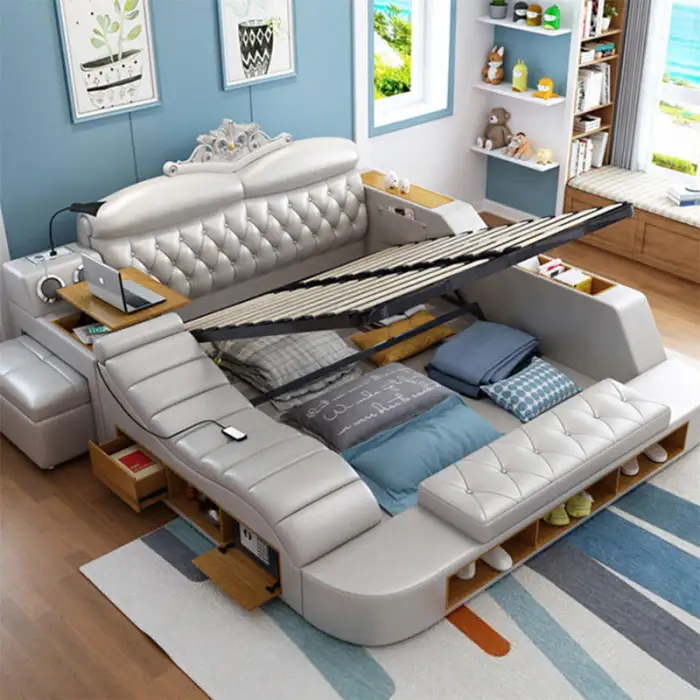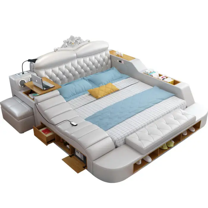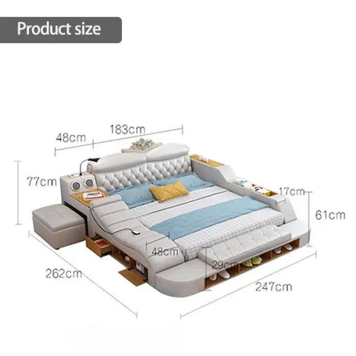 The bed features a European design style, combining modern aesthetics with functional features.
