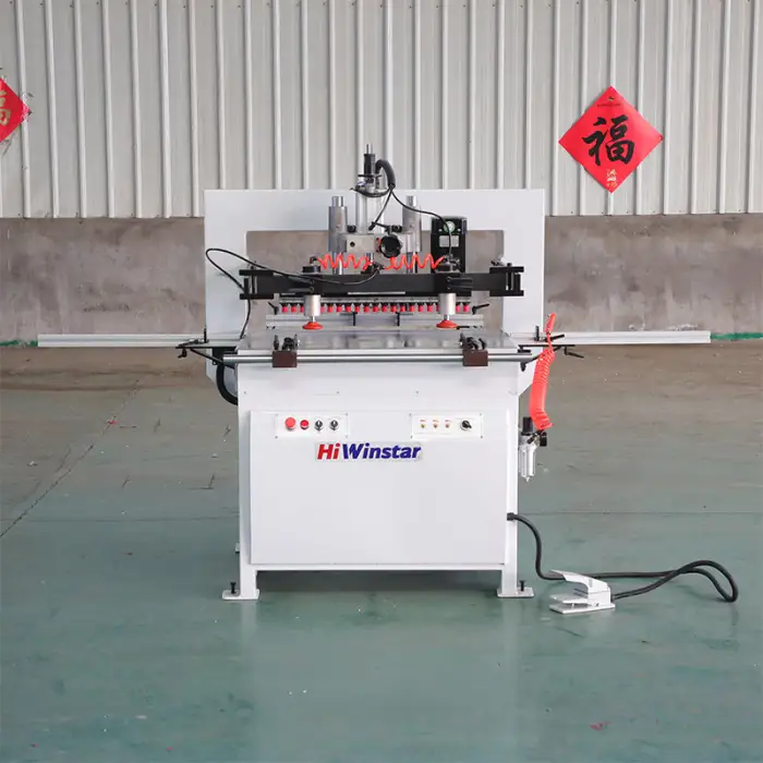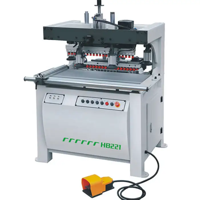 This machine is designed for boring and drilling various types of wood, making it ideal for cabinet door production and other woodworking projects.