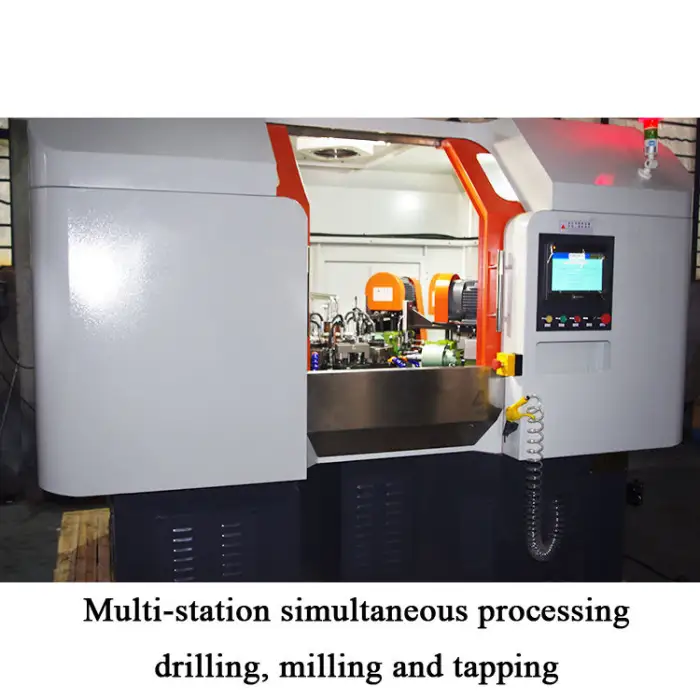 Yes, the machine is designed for simultaneous drilling, milling, and tapping, enhancing productivity.