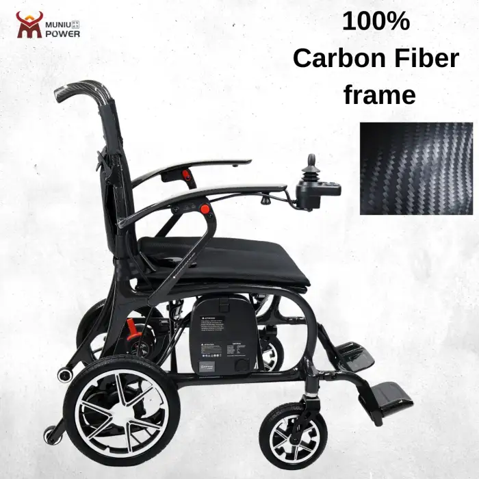 The MUNIU Carbon Fiber Electric Wheelchair is made from high-quality carbon fiber, making it both strong and lightweight.