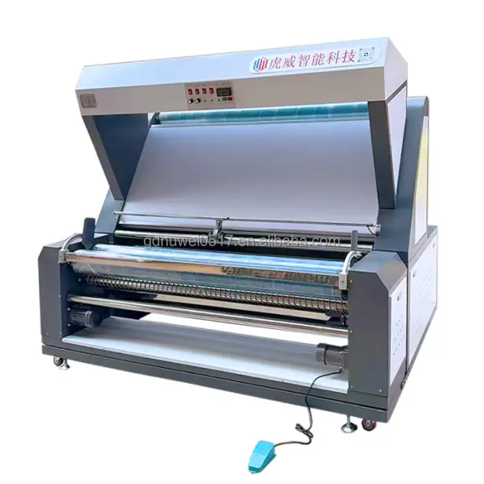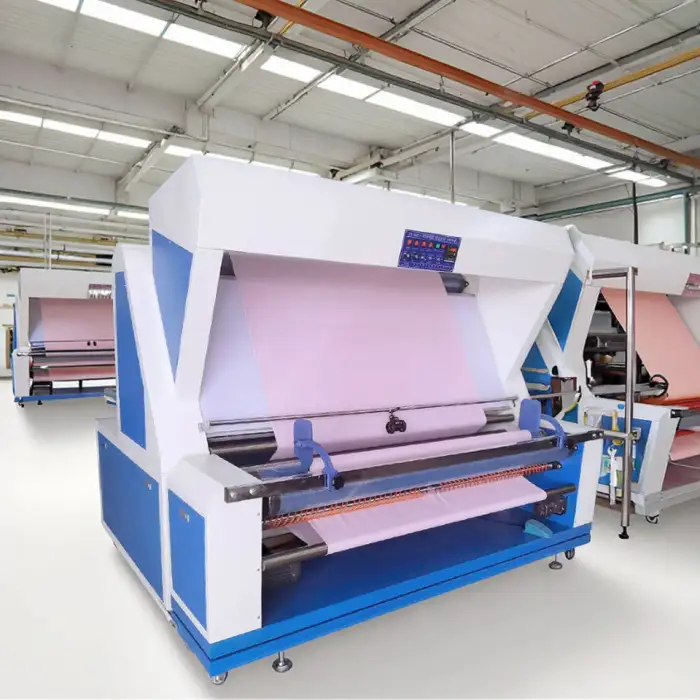 The machine is designed for both small and large-scale operations, making it versatile for various textile inspection needs.