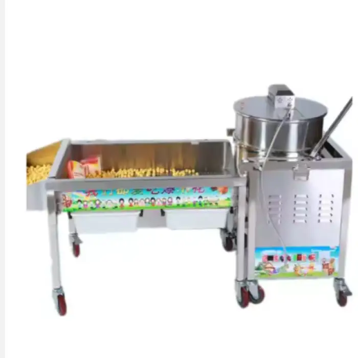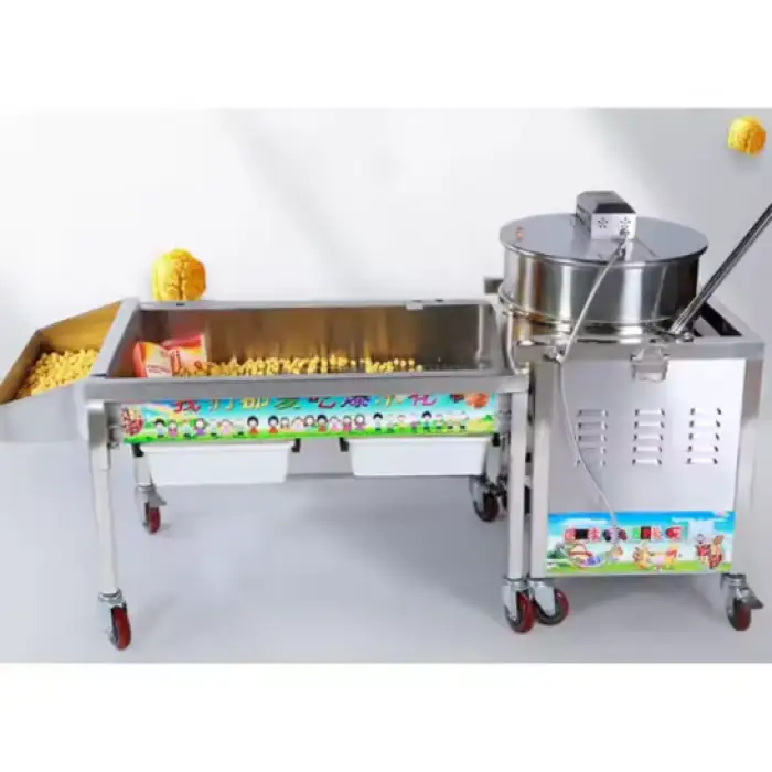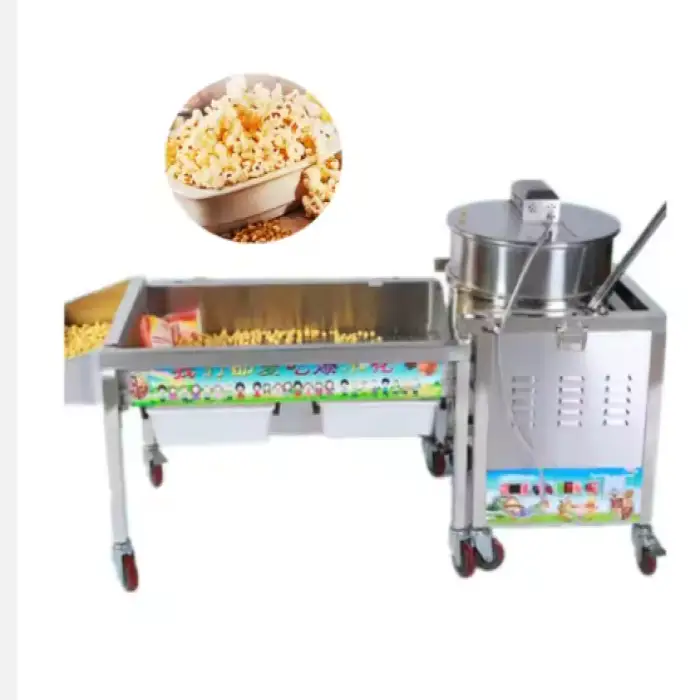 The machine uses a gas heating method for quick and efficient popcorn production.