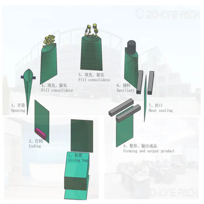 The machine is suitable for various packaging materials, especially stand-up pouches designed for granule and solid products.