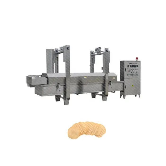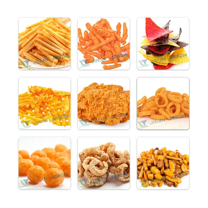 The oil fryer is designed for making various snacks, including potato chips, banana chips, and other wheat flour-based snacks.