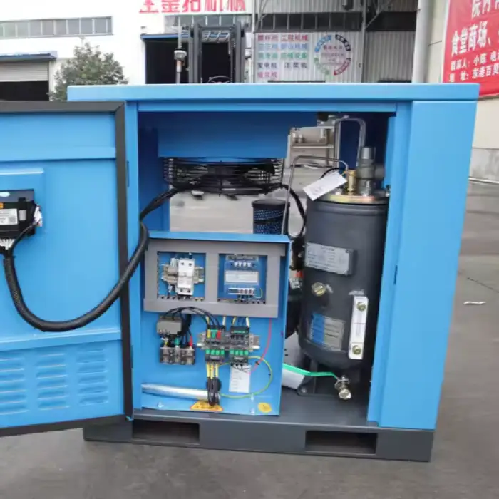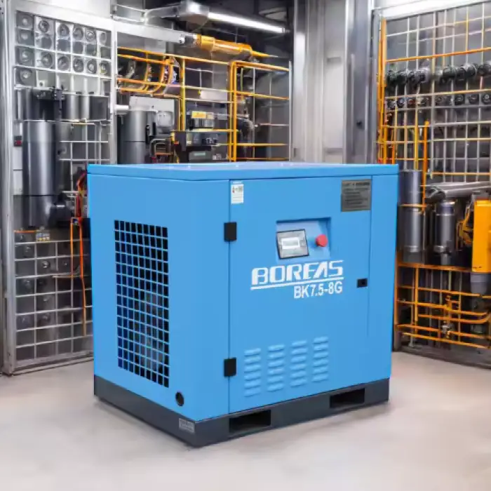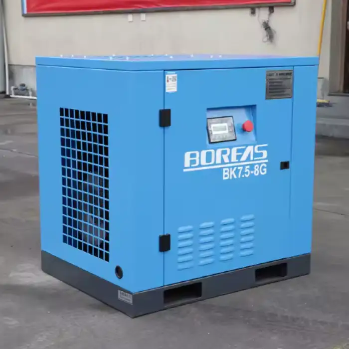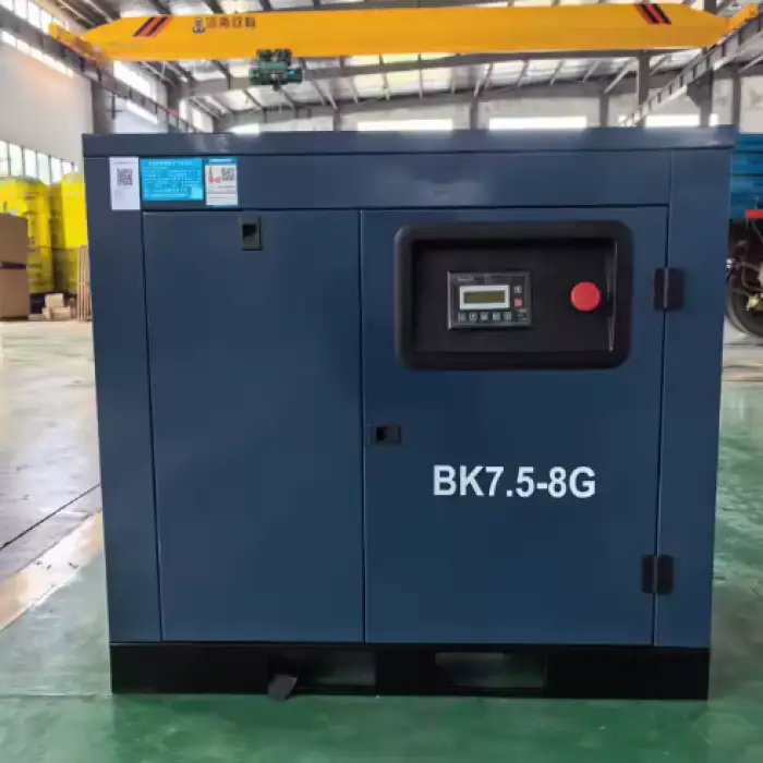The Oil-less Industrial Direct Drive Air Compressor BK7.5-8G is designed as a stationary unit and is not intended for portability.
