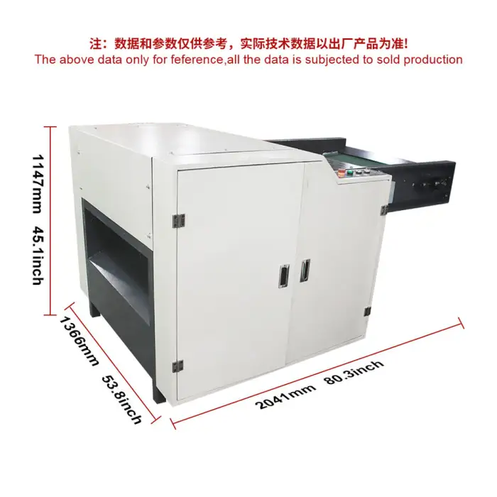 The dimensions of the Old Cloth Opening Recycling Machine are 1900 mm in length, 1400 mm in width, and 1100 mm in height.