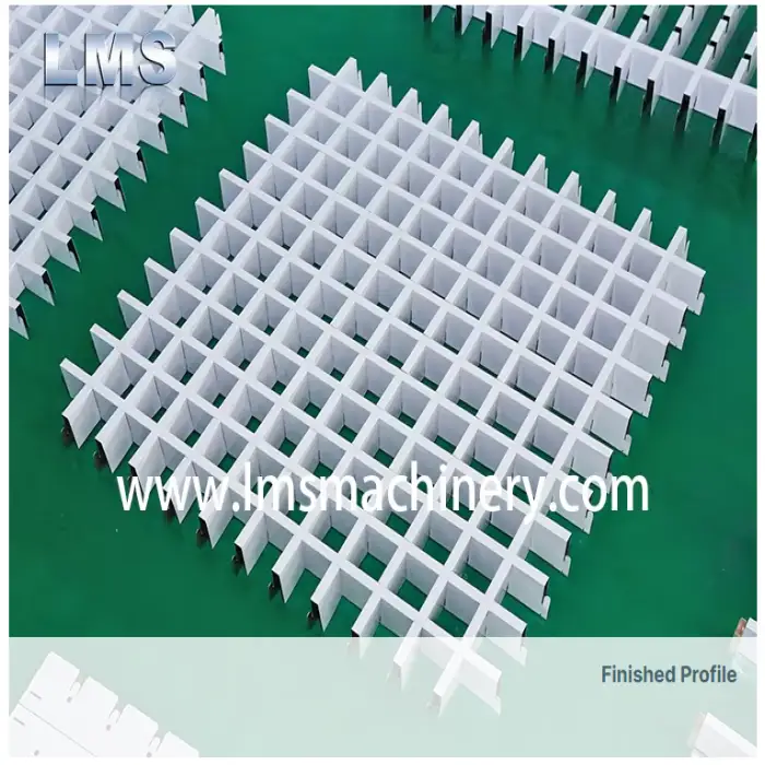 The machine supports various ceiling tile designs, enhancing interior aesthetics with customizable metal ceilings.