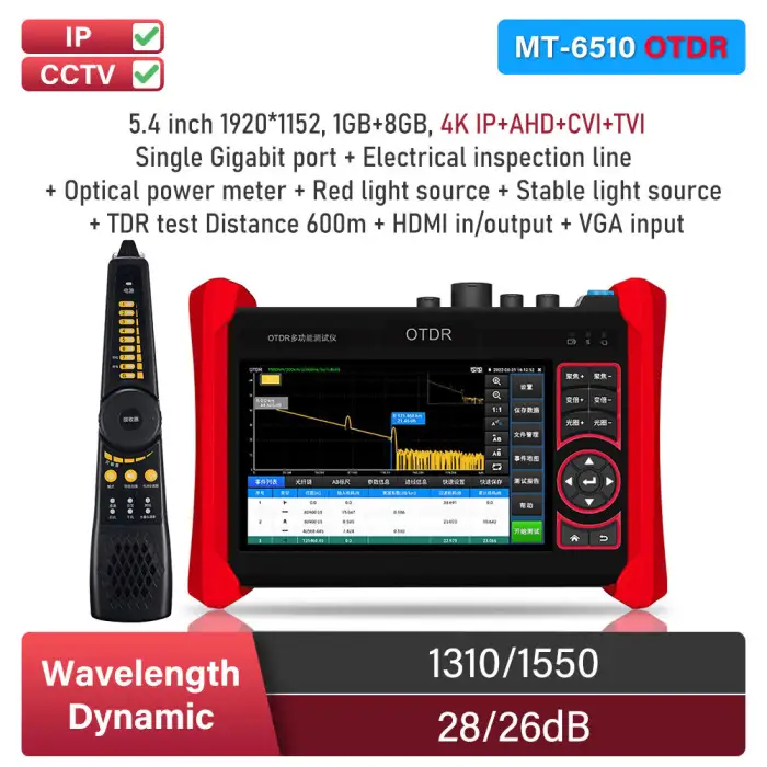 The OTDR Tester is suitable for testing fiber optic cables, monitoring CCTV systems, performing quality checks on fiber installations, troubleshooting network issues, and facilitating data transmission tests.