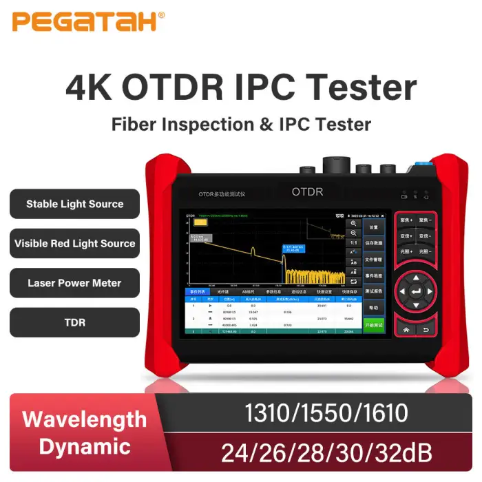 The OTDR Tester provides a dynamic range of 32/30/28/26/24dB, allowing for accurate measurements across various fiber optic applications.