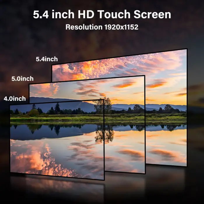 The device features a 5.4-inch touchscreen display with a resolution of 1920x1152 pixels, providing clear and detailed visuals.