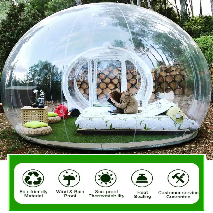 The tent is made from 0.8mm clear PVC and 0.6mm PVC tarpaulin, ensuring durability and transparency.