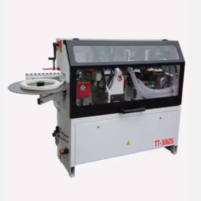 This machine is ideal for edge banding various materials used in furniture production, including wood and laminate.
