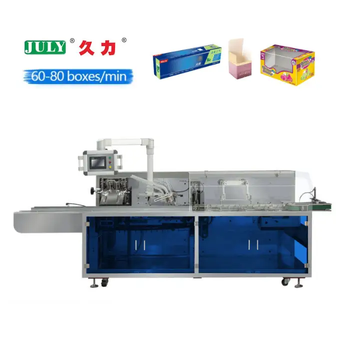 By automating the cartoning process and operating at high speeds, the machine significantly reduces manual labor and increases output.