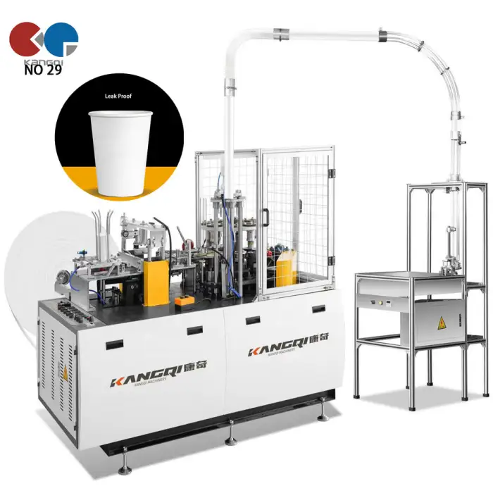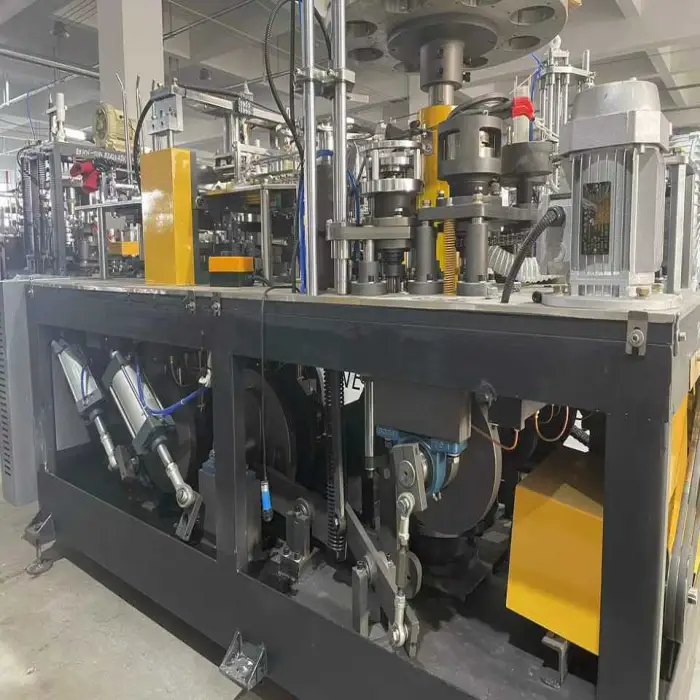 The machine is designed for efficient production, allowing for quick and reliable manufacturing of paper cups.