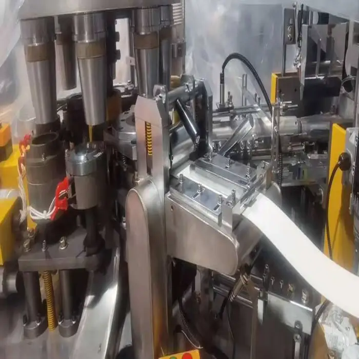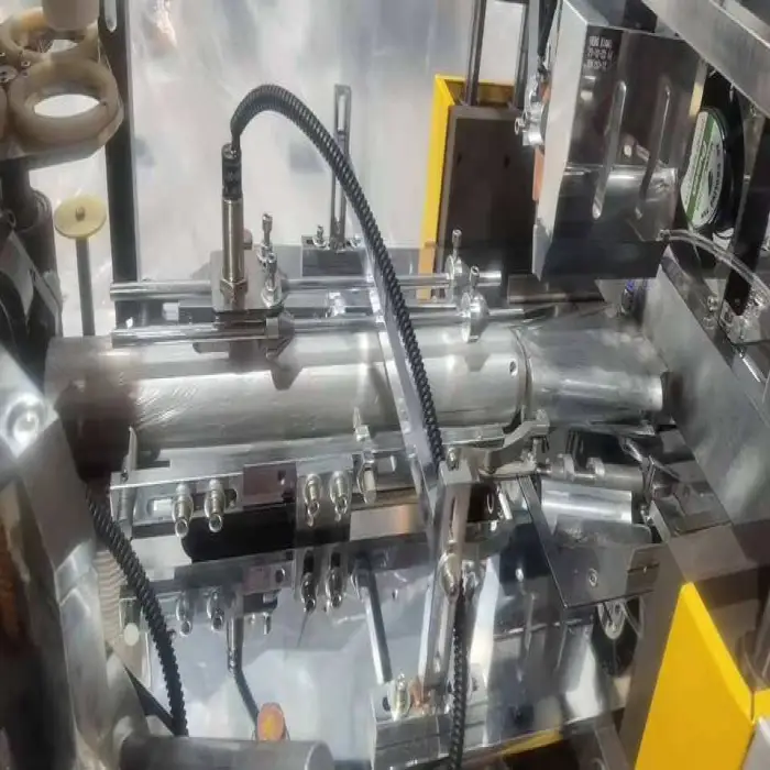 The machine uses high-quality PE coated paper with a weight range of 150 to 350 grams per square meter.