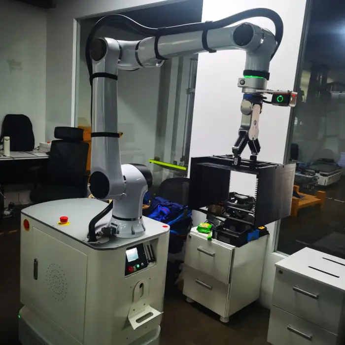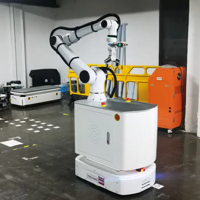 The cobotic arm features a single jaw design that provides effective grasping solutions for handling various materials.