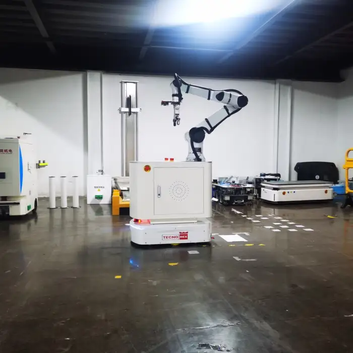 The AGV automates material handling, reducing manual labor and increasing efficiency on the production floor.