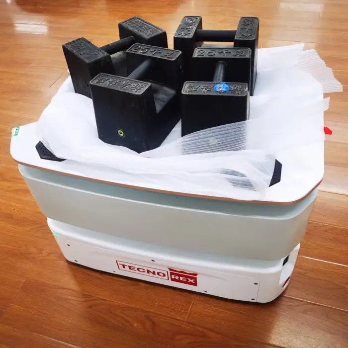 The Payload 100kg Seer AGV has a maximum payload capacity of 100 kg, making it suitable for heavy lifting tasks.