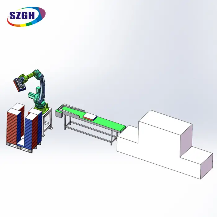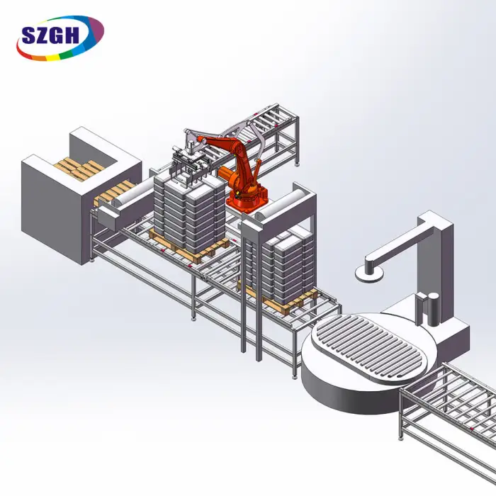 Industries such as warehousing, manufacturing, and logistics can benefit from using this robot for material handling and packaging tasks.