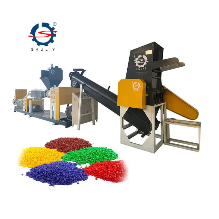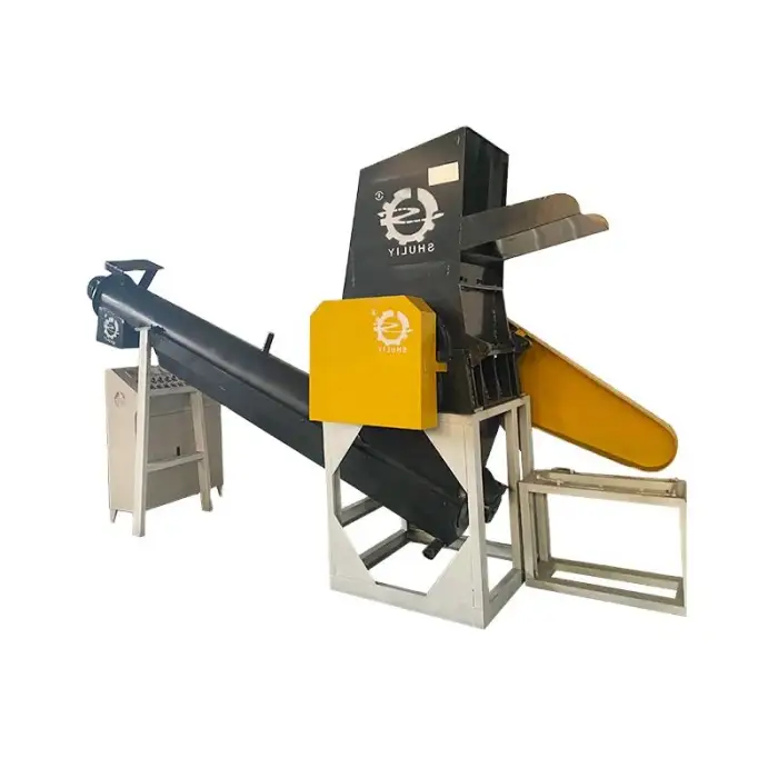 The machine includes a washing mechanism that cleans the plastic waste before it is shredded, ensuring better quality of the recycled material.